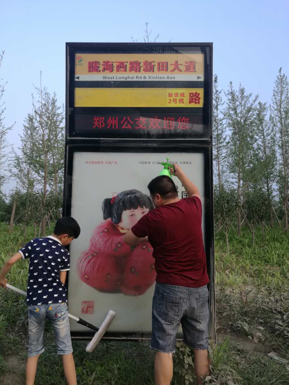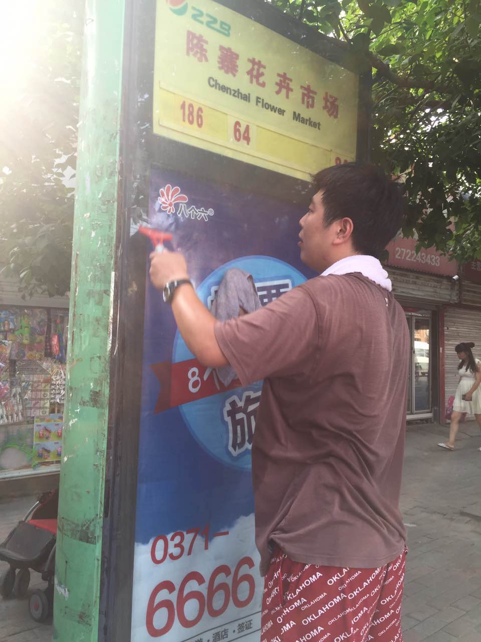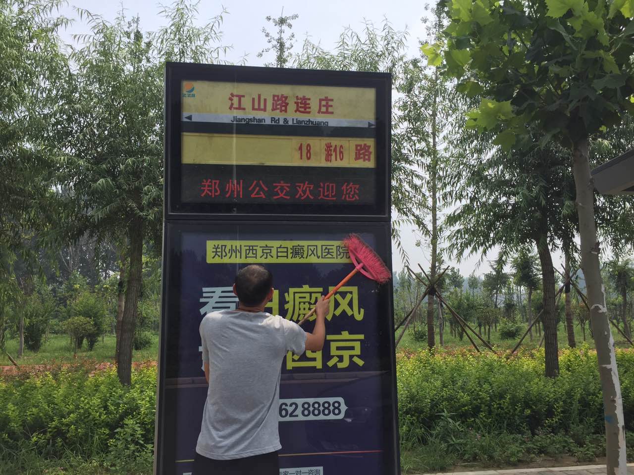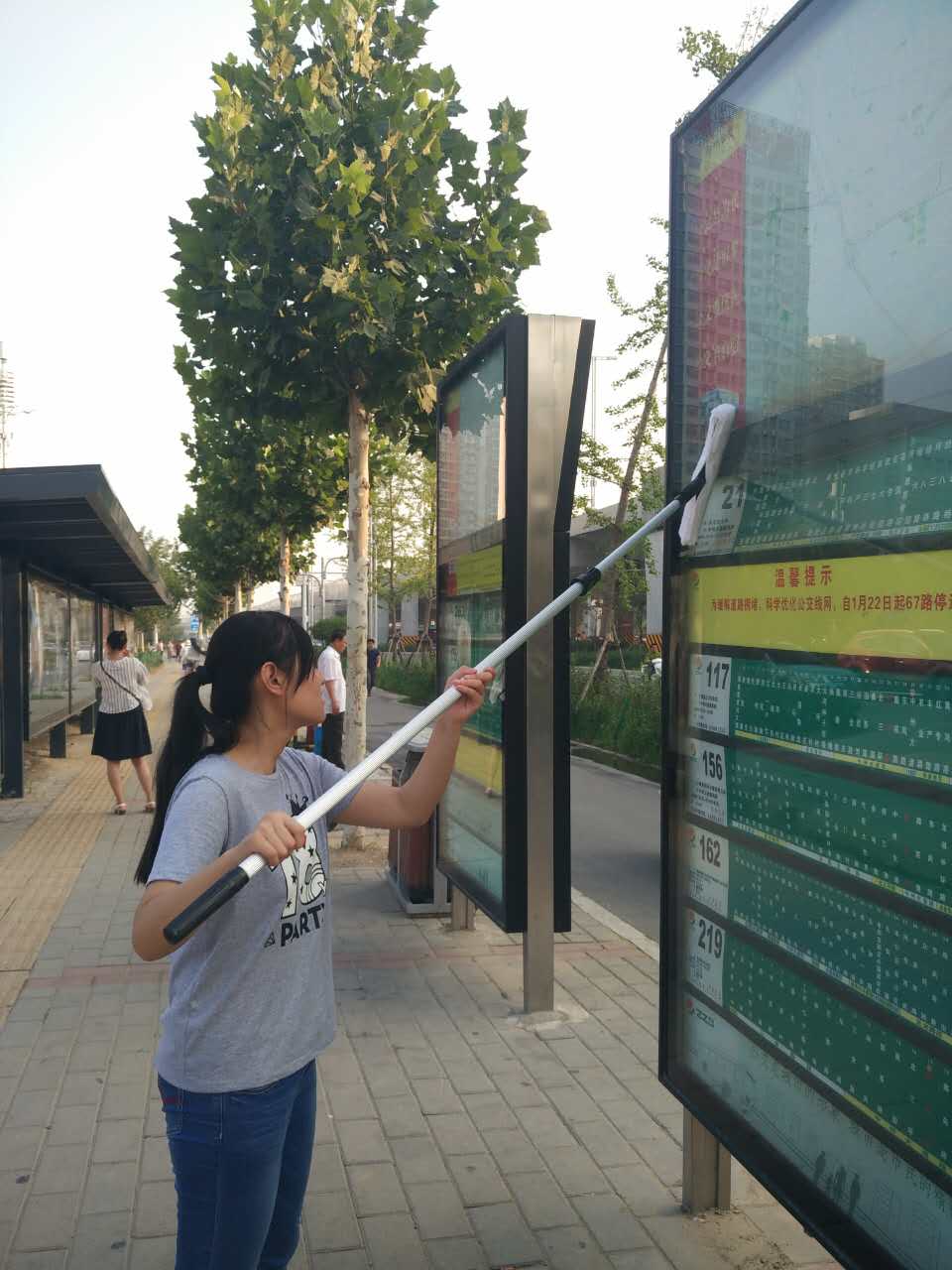 那天,正是二十四節(jié)氣里的“大暑”,聽(tīng)到這兩個(gè)字,浮現(xiàn)在眼前的是什么,不用小編說(shuō)大家也知道吧?!“炎熱到了極點(diǎn)、一年之中最熱的一天,這就是對(duì)大暑最權(quán)威的解釋。而就那一天及接下來(lái)的兩天中,公司全體員工在領(lǐng)導(dǎo)的帶領(lǐng)下,拿著戰(zhàn)斗武器,對(duì)全市的公交站牌進(jìn)行了一次徹底清掃保潔。